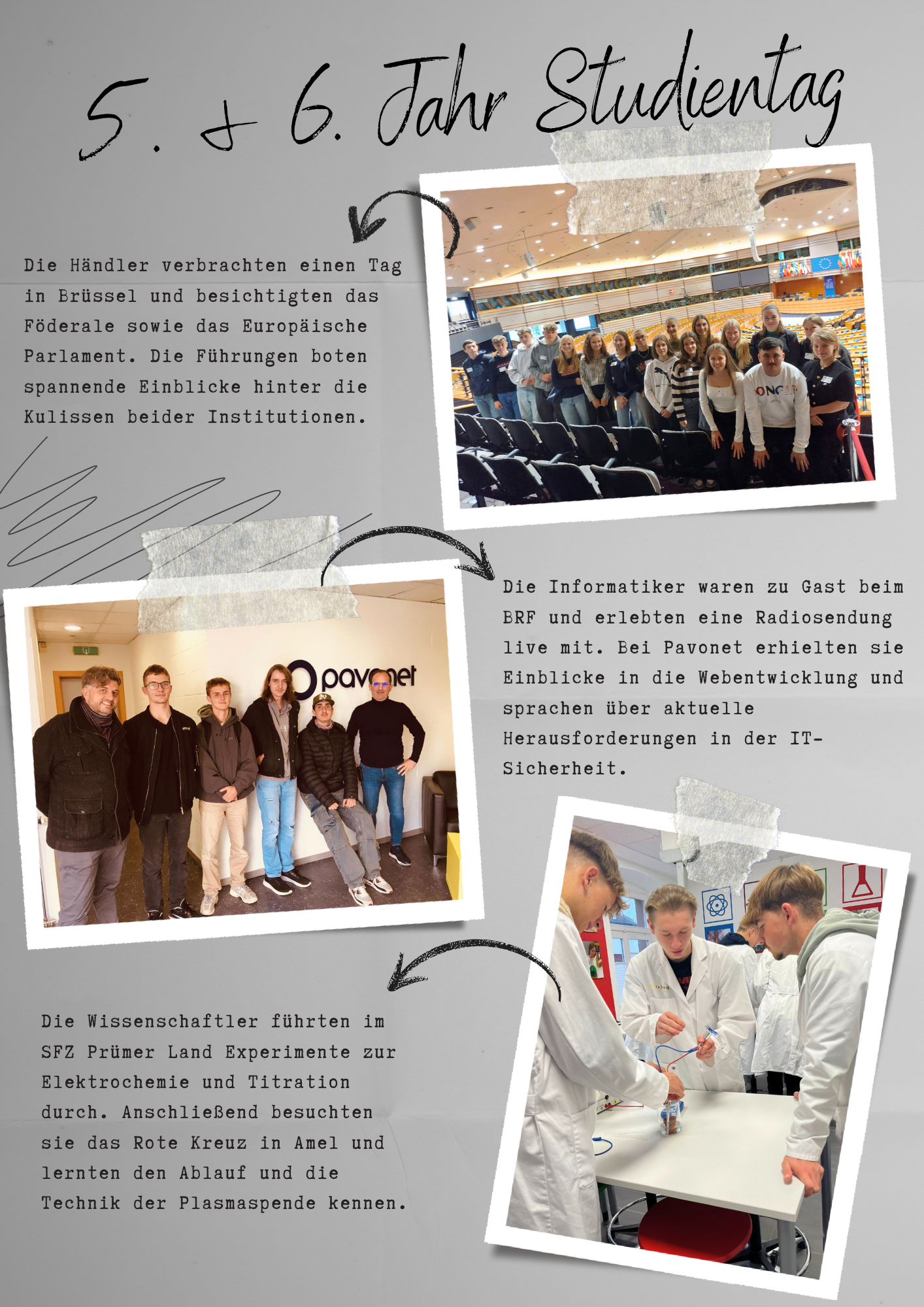 Die Schüler des 5. und 6. Jahres erhalten jedes Jahr die Möglichkeit, einen ganzen Tag lang einen Betrieb kennenzulernen. Dabei erleben sie Abläufe und Prozesse hautnah, entdecken verschiedene Bereiche und bekommen einen realistischen Eindruck von der Arbeitswelt.